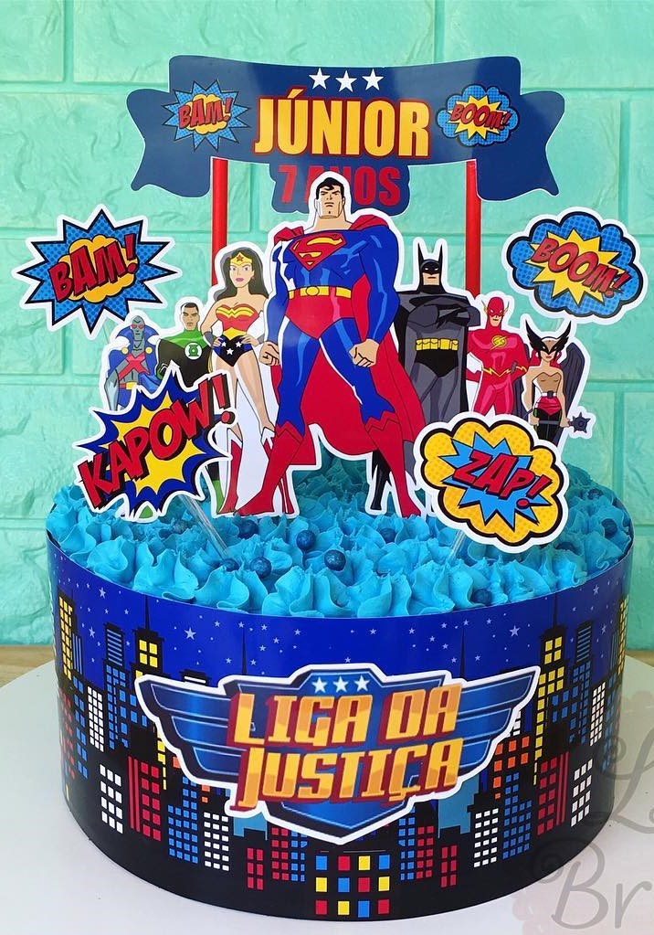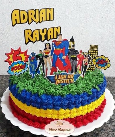 . Bolo Liga Da Justiça 1 Andar Bolo Liga da Justiça no Elo7 | Doce Saboor (9D88C2) Doceria Viana - Bolo em chantininho, com o tema Liga da... | Facebook